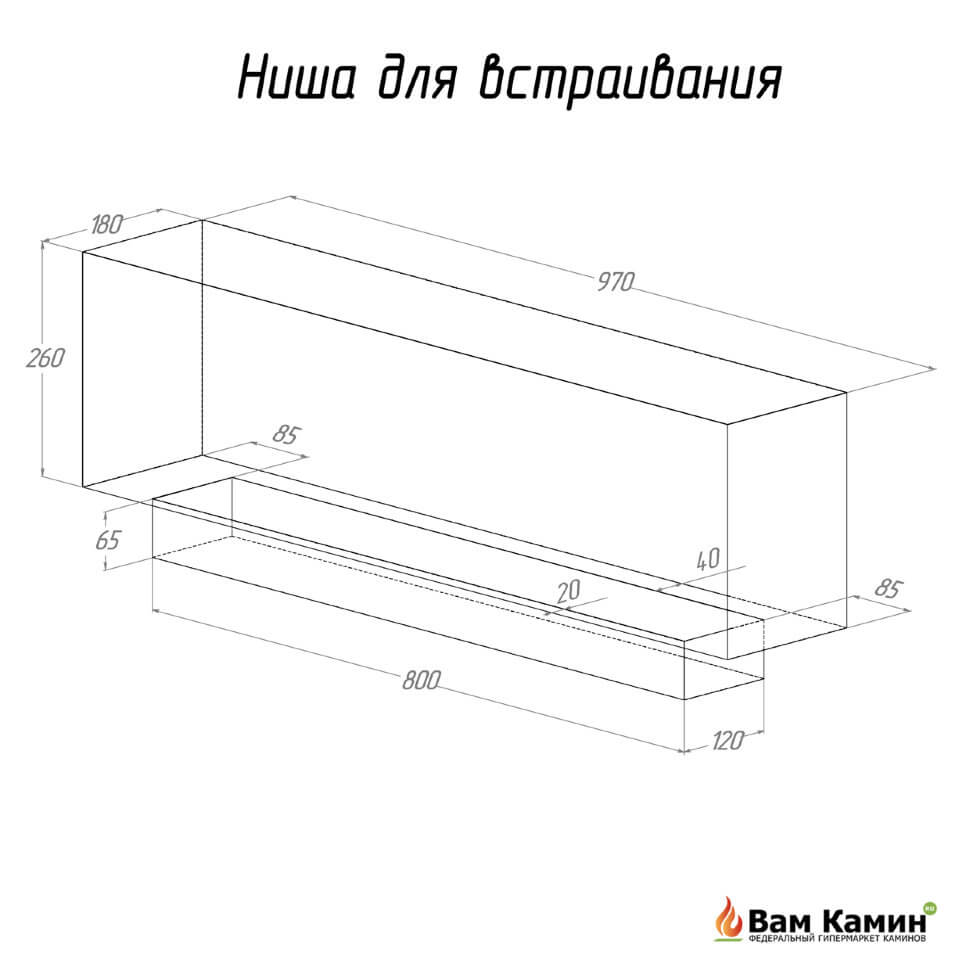 Встраиваемый биокамин FLAGMAN 1000 XL предназначен для встраивания в глухие ниши из гипсокартона, кирпича, пеноблоков, бетона.
