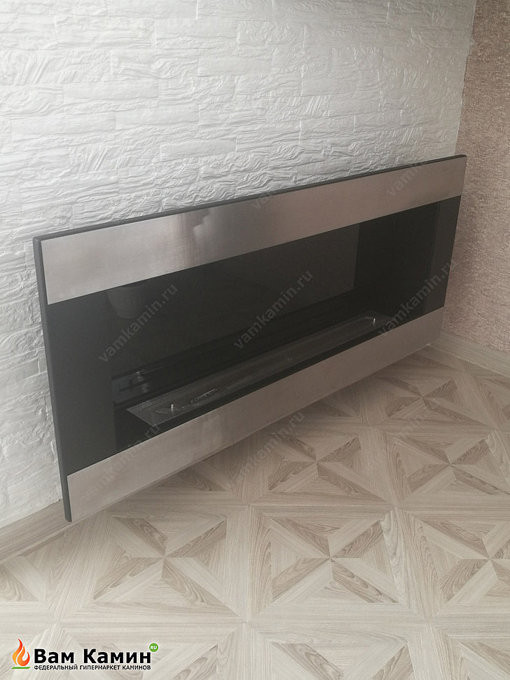 Биокамин в нишу SteelHeat GRAND-H 1200, как видно по фото, удачно вписался в интерьер. Светлая рамка GRAND-H цвета “металлик” хорошо сочетается с бело-серым фоном, а черная часть биокамина создает заметный четкий акцент в окружающей обстановке. Линия огня в топливном блоке доходит до 600 мм, поэтому такой биокамин в квартире выступает как дополнительный источник обогрева.