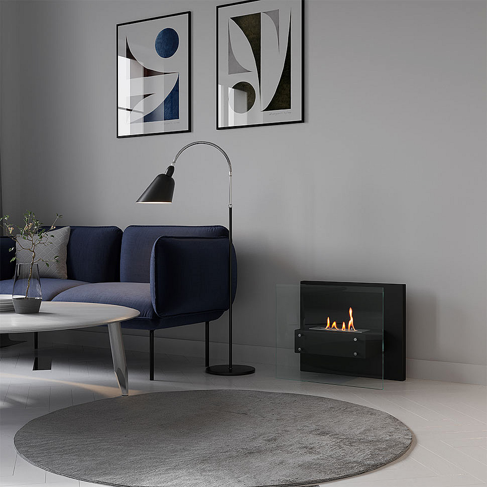 Мобильные напольные экокамины изготавливаются из стекла или металла. Они могут размещаться в любом месте помещения свободно передвигать при необходимости.